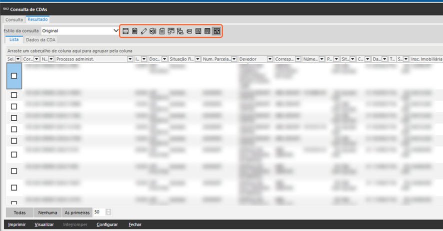 Passo 4: o sistema apresentará todas as CDAs com prováveis prescrições com as informações necessárias para análise da Procuradoria.