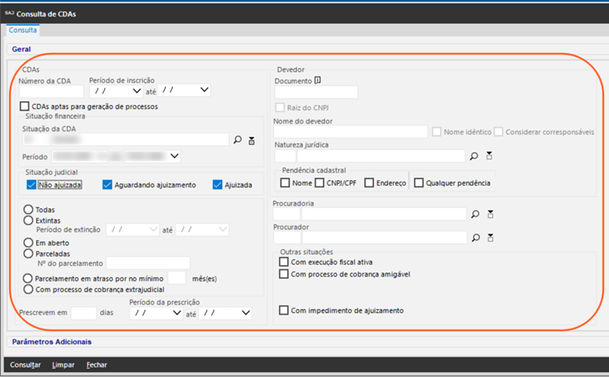 Como consultar Parcelamentos de CDAs incluídos na base do SAJ Procuradorias?